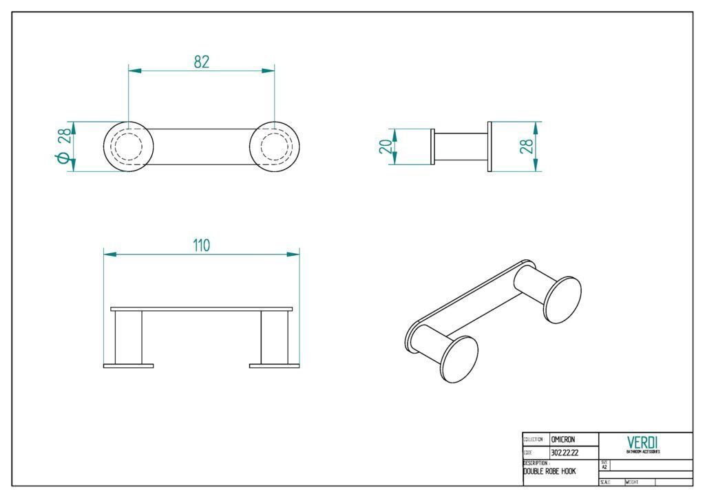 Άγγιστρο Διπλό W110xD35xH28mm Gun Metal Gloss Verdi Omicron 3022250