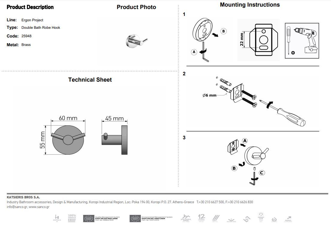- Άγκιστρο Διπλό Old Copper Mat Sanco Ergon 25918-M26 Ειδική Τιμή 36,00 € Κανονική τιμή 40,00 €