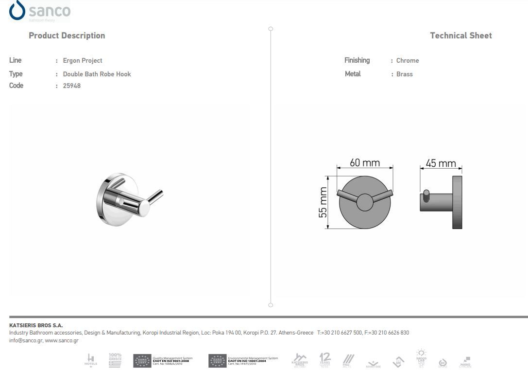 Άγκιστρο Διπλό Χρωμέ Sanco Ergon Project 25948-A03