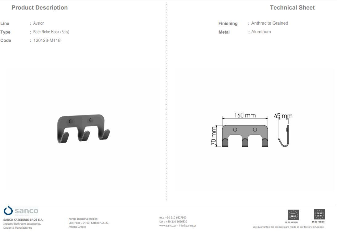 Άγκιστρο Τριπλό Επίτοιχο Μπορντώ Sanco Avaton Bordeaux Grained 120128-Z121