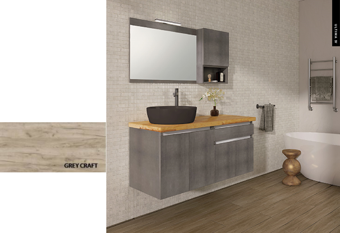 Έπιπλο Μπάνιου Μ120xB50xY55cm Βάση-Πάγκος Μασίφ Ξύλο Πεύκο-Νιπτήρας-Καθρέπτης-Φωτιστικό-Άνω Ντουλάπι Μελαμίνη σε MDF Grey Craft Savvopoulos Ultima 04-8002