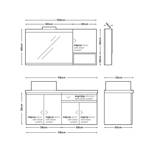 Η τοποθέτηση του Επίπλου είναι Κρεμαστή στον τοίχο οπότε ο καθαρισμός του πατώματος γίνεται ευκολότερος.