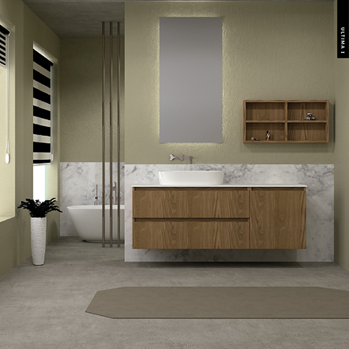 Έπιπλο Μπάνιου Μ126xB50xY55cm Βάση-Πάγκος Solid 12mm-Νιπτήρας-Καθρέπτης-Άνω Ντουλάπι, Δρυς Κ/Π Θαλάσσης Μόκα Savvopoulos Ultima 01-4018