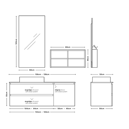 Η τοποθέτηση του Επίπλου είναι Κρεμαστή στον τοίχο οπότε ο καθαρισμός του πατώματος γίνεται ευκολότερος.
