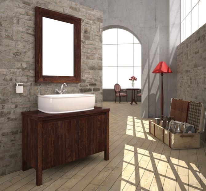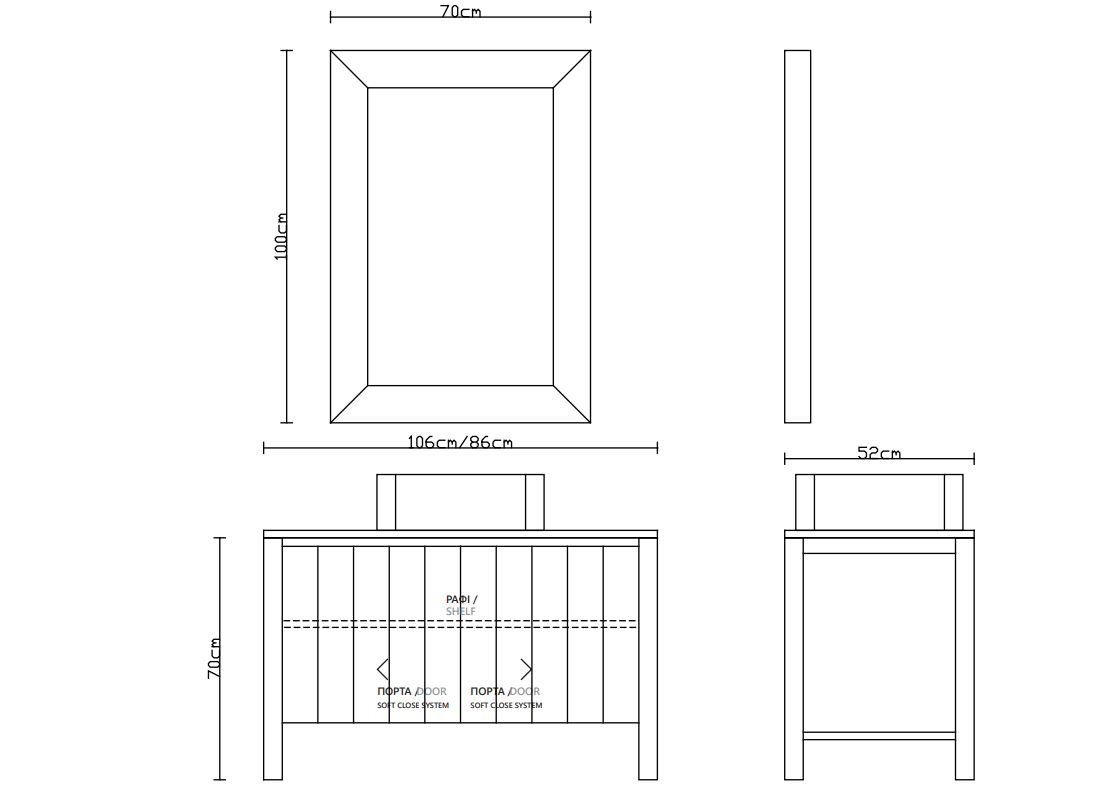 Έπιπλο Μπάνιου Μ80xB50xY70cm Βάση-Πάγκος-Νιπτήρας-Καθρέπτης, Μασίφ Ξύλο Πεύκου Καρυδί Savvopoulos Ethnik 02