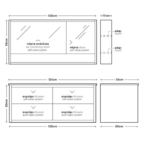 Η Βάση του επίπλου έχει 4 Συρτάρια όπου μπορείτε να αποθηκεύσετε πετσέτες,