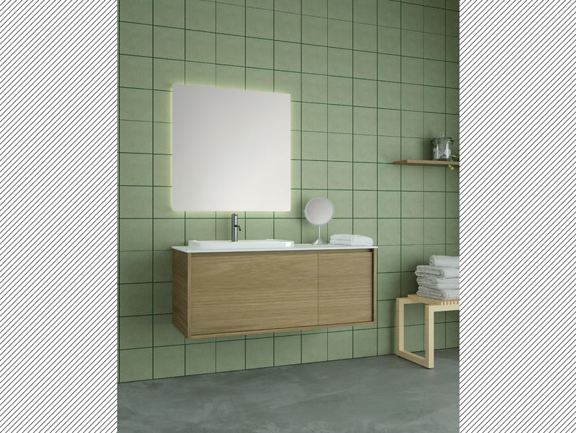 Διαθέσιμες διαστάσεις 121cm με νιπτήρα solid surface, σε οκτώ αποχρώσεις δρυς και 10 αποχρώσεις λάκας σε γυαλιστερή ή ματ υφή.
