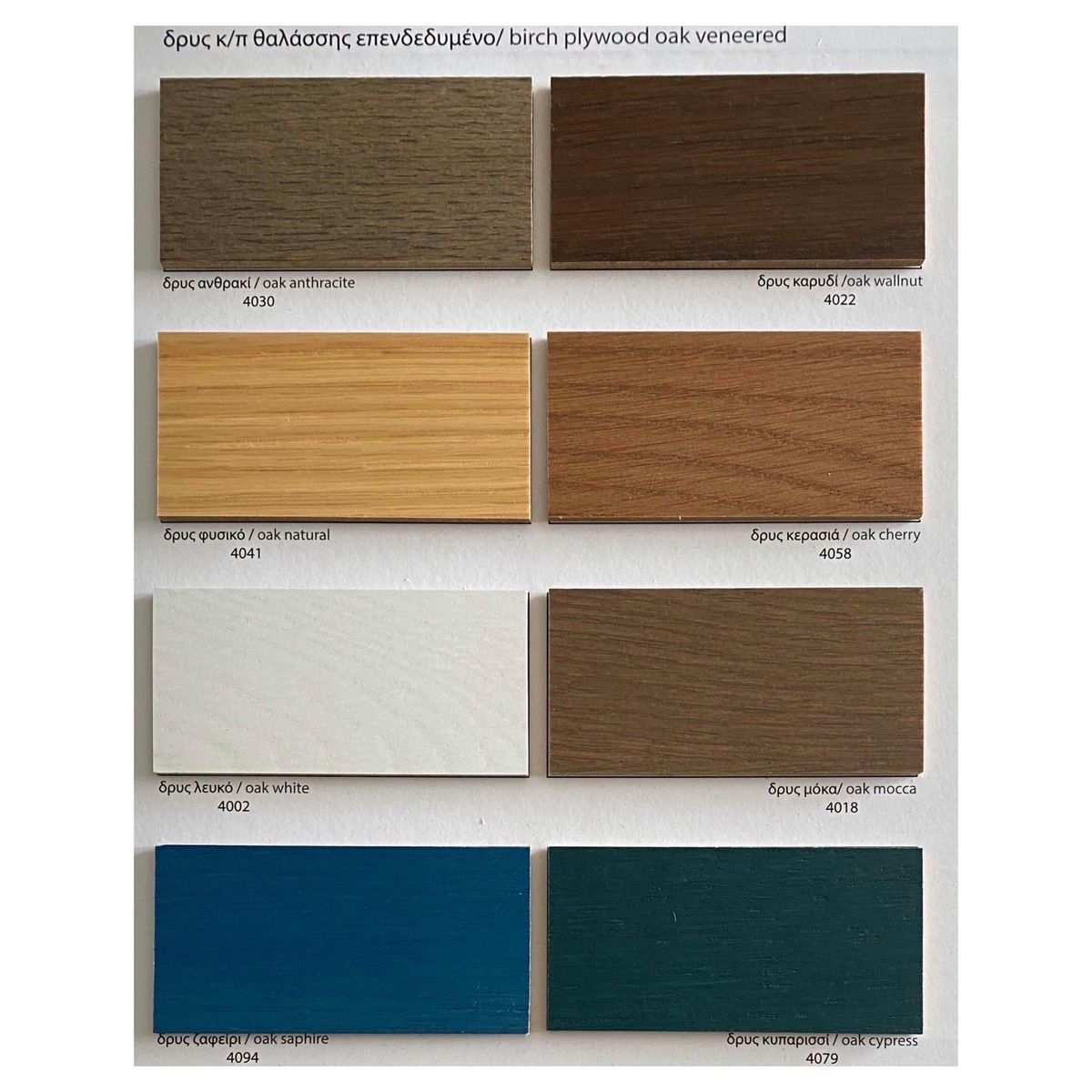 Διατίθεται στα χρώματα: 8 Aποχρώσεις Επενδεδυμένου Καπλαμά Δρυ