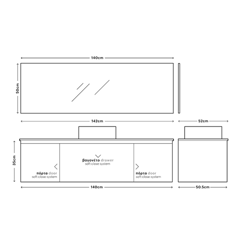 Σειρά: Elegance Soul IΙΙΔιαστάσεις Βάσης Επίπλου: Π142*Υ35*Β50 cm