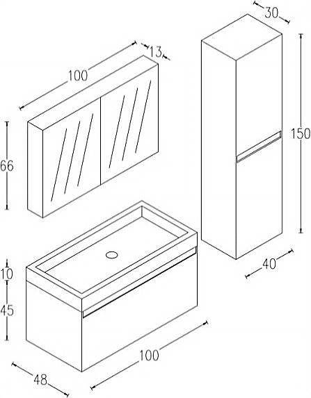 Σετ Κρεμαστό Έπιπλο Μπάνιου 100 cm - Νιπτήρα, ECO-100. P-white (Λευκή Λάκα Γυαλιστερή)