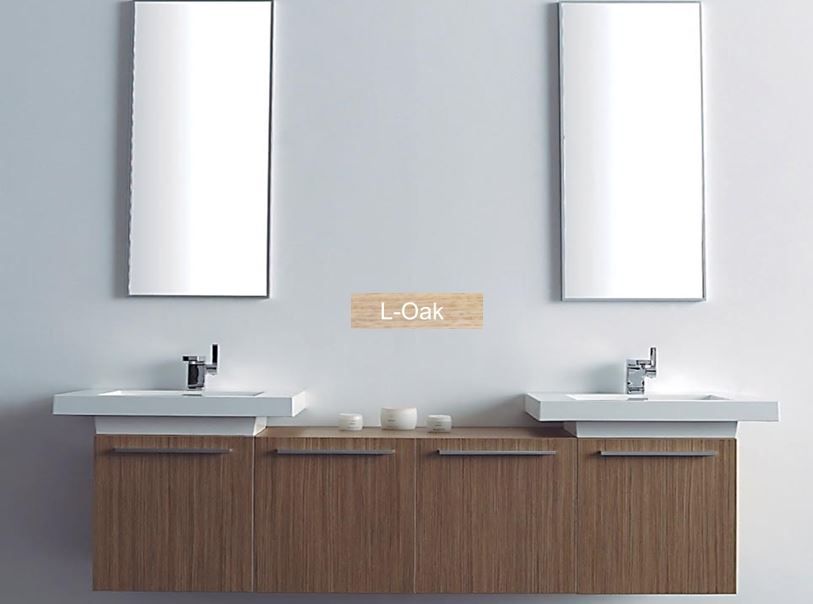 ECO-160D,Σετ Κρεμαστό Έπιπλο Μπάνιου 160 cm, δύο ντουλάπια των 40cm & ένα ντουλάπι των 80cm softclosing, Light Oak2 Λευκοί επικαθήμενοι νιπτήρες από τεχνητό μάρμαρο τύπου Corian.Διατίθενται επίσης: Καθρέπτης με πλαίσιο Αλουμινίου Π120*Υ50*Β2 cm