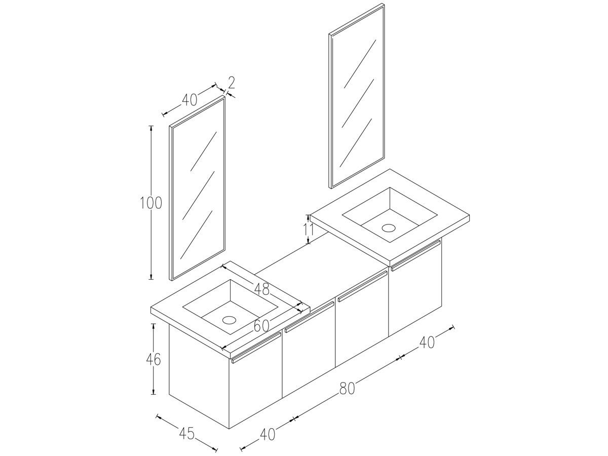 Έπιπλο Μπάνιου ECO-160 160 εκ. Βάση & δύο νιπτήρες, MFC Χρώμα Μελαμίνης Teak FT21.160.002T