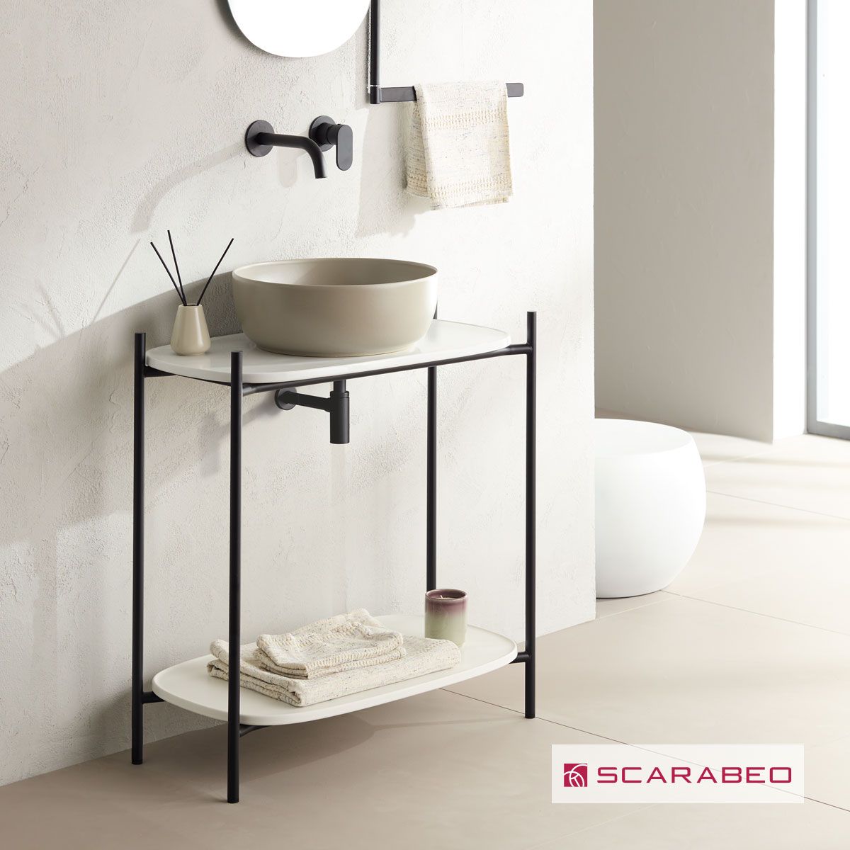Έπιπλο μπάνιου Laila 2703-NROP με ράφια 2715+2710-41 χωρίς νιπτήρα, Scarabeo 27031510-NROP4141