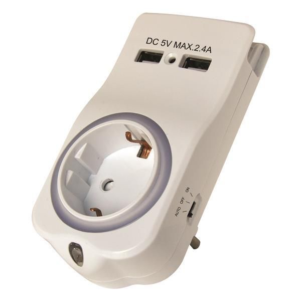 ΑΝΤΑΠΤΟΡΑΣ ΣΟΥΚΟ ΜΕ ΦΩΤΑΚΙ ΝΥΚΤΟΣ,2 USB,ΒΑΣΗ ΚΙΝΗΤΟΥ & ΠΡΟΣΤΑΣΙΑ ΕΠΑΦΩΝ Eurolamp 147-09003