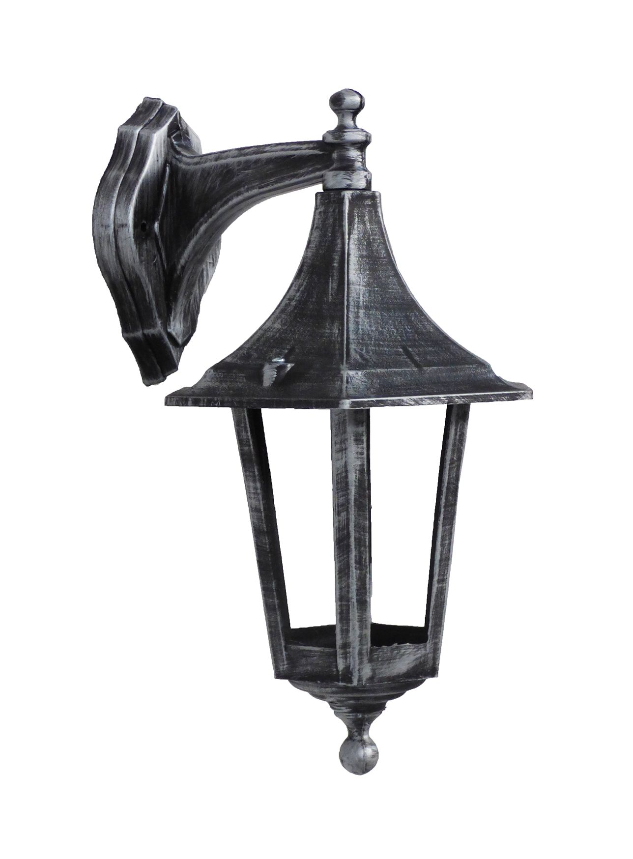 Φωτιστικό τοίχου 6γωνο πλαστικό πατ.ασημί DOWN LP-401AN SILVER Τεχνικά χαρακτηριστικά Πλαστικό Χρώμα πατ.ασημί / silver H39,5 x 22,5 x 20,5cm E/27 max 10w LED IP44 Ελληνικό Προϊόν