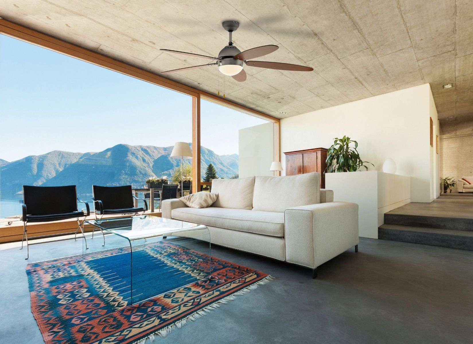 Μοντέρνος ανεμιστήρας οροφής με φως, ιδανικός για τον αερισμό δωματίων από 13m2 έως 27m2.