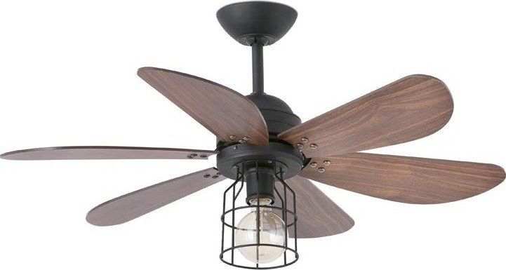 Faro Chicago 33703 Ανεμιστήρας Οροφής με Φωτισμό, Μαύρο σκελετό /Πλέγμα, 6 Καφέ σκούρα Πτερύγια