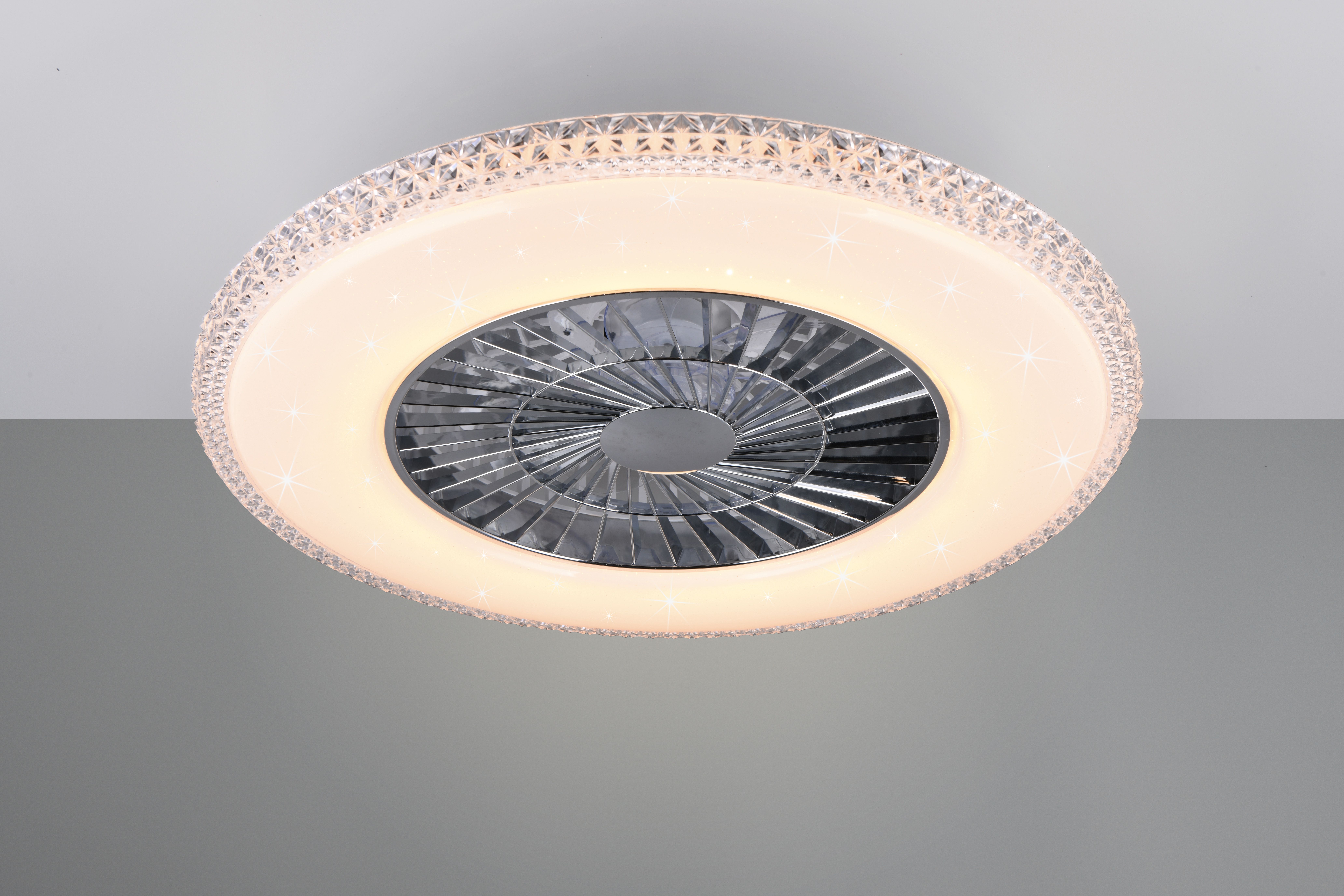 The luminaire with its trendy starlight cover and crystal rim has a round look and is a real all-rounder.