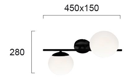 Απλίκα Δίφωτη 450xP150xH280mm 2xE27 Μέταλλο Μαύρο-Γυαλί Οπάλ Viokef Floris 4260200