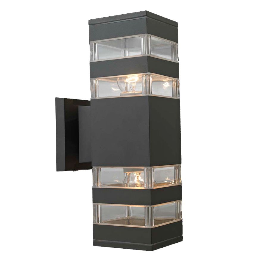 Επιτοίχιο φωτιστικό εξωτερικού χώρου( απλίκα), στο χρώμα του γραφίτη (σκούρο γκρί) με φωτισμό πάνω-κάτω  .Το σώμα του φωτιστικού είναι κατασκευασμένο από χυτό αλουμίνιουψηλής πίεσης και κράμα αλουμινίου.Η επιφάνειά του είναι επικαλυμμένη με διπλή αντιδιαβρωτική στρώσηώστε να παρατείνει την αντοχή του.Ο λαμπτήρας προστατεύεται από PVC υψηλής ποιότητας.Ύψος: 30 εκ.Μήκος: 9 εκ.Πλάτος: 15,5 εκ.Λαμπτήρες: 2 τεμ.Τύπος Λαμπτήρα: Ε27Watt: 60Στεγανότητα: IP44