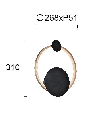 Απλίκα Επίτοιχη Ø288xP51xH310mm Led 15w 3000K 725lm Μέταλλο Χρυσό-Μαύρο Viokef Melia 4263300