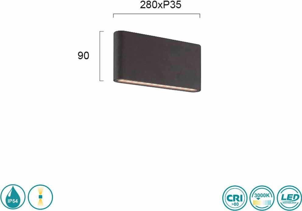 Απλίκα Επίτοιχη Εξ.Χώρου IP54 Led 24w 1290lm 3000K Γκρι Αλουμίνιο Viokef Argon 4226701