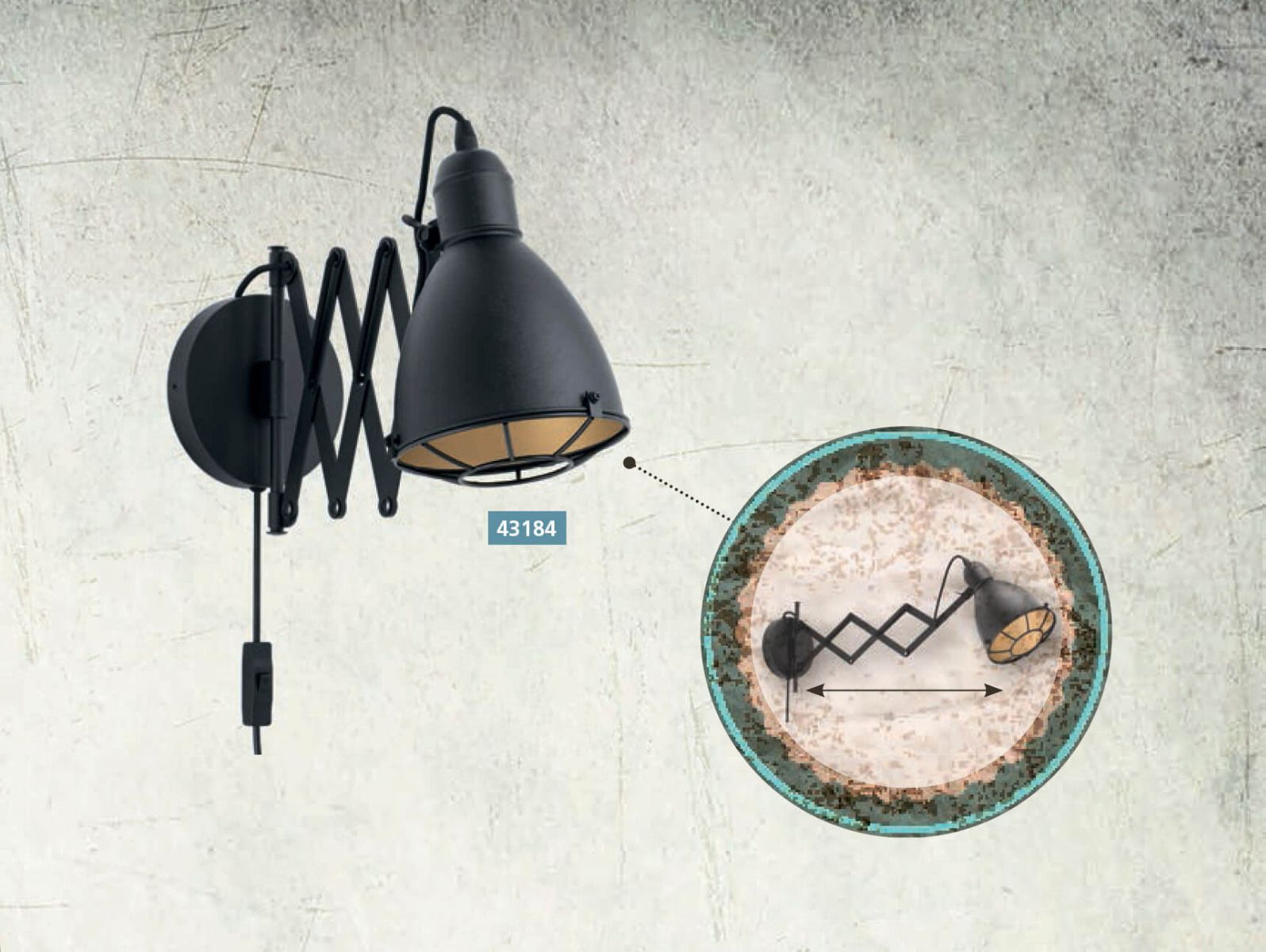 Απλίκα Επίτοιχη Επεκτεινόμενη Μπουτόν On-Off Μέταλλο Μαύρο-Χρυσό Eglo Treburley 43184