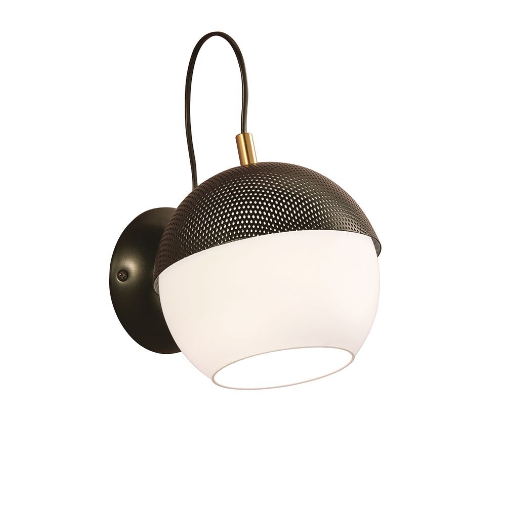 Απλίκα Επίτοιχη Μονόφωτη 1xE27 Ø18,5xH55cm Γυαλί Οπάλ Ματ-Μαύρο Διάτρητο με Χρυσές Λεπτομέρειες Viokef Brody 3098000