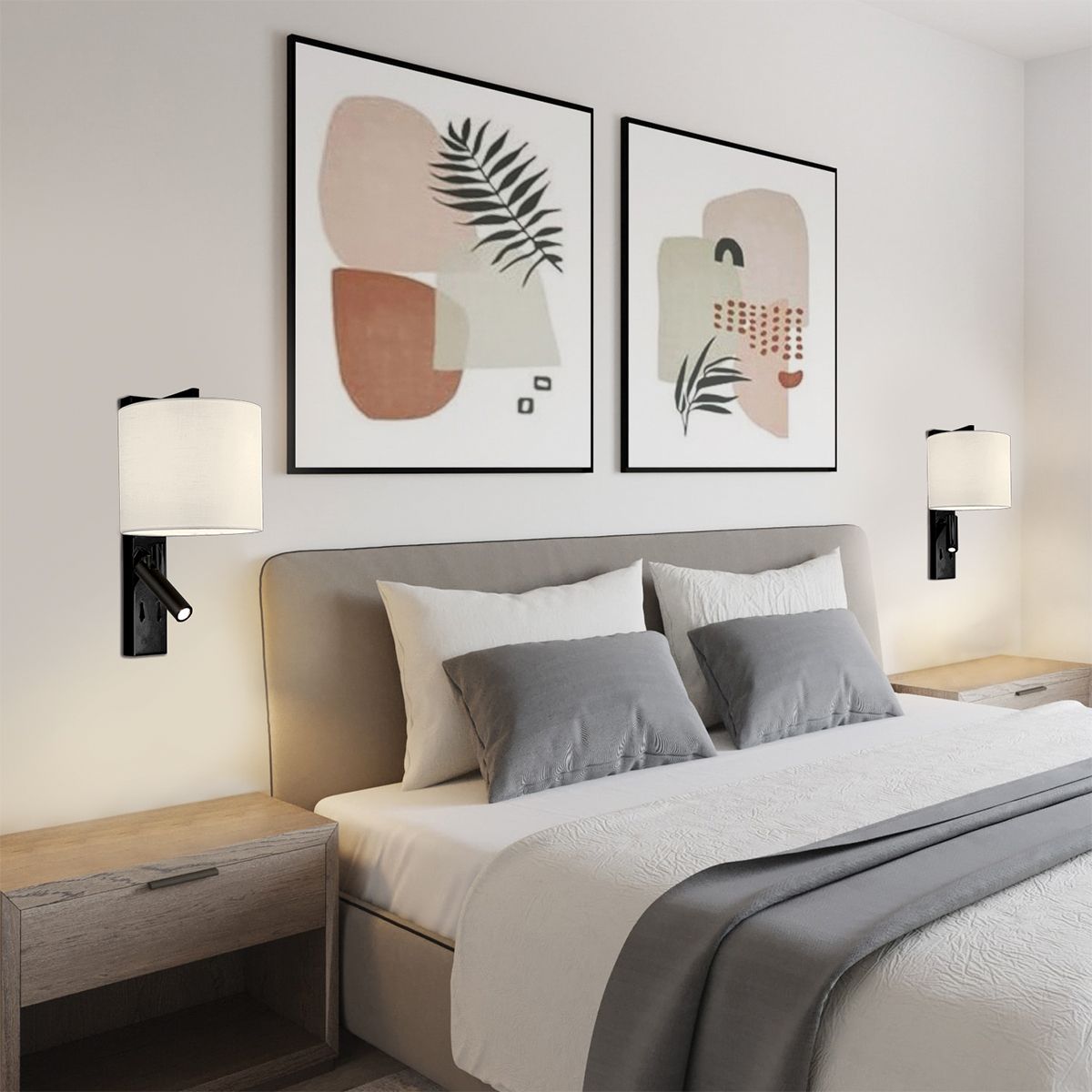 Απλίκα Επίτοιχη 1xE27 & Σποτ Ανάγνωσης 3w Led Μαύρο Μέταλλο Λευκό Αμπαζούρ Mayor Viokef 4229500