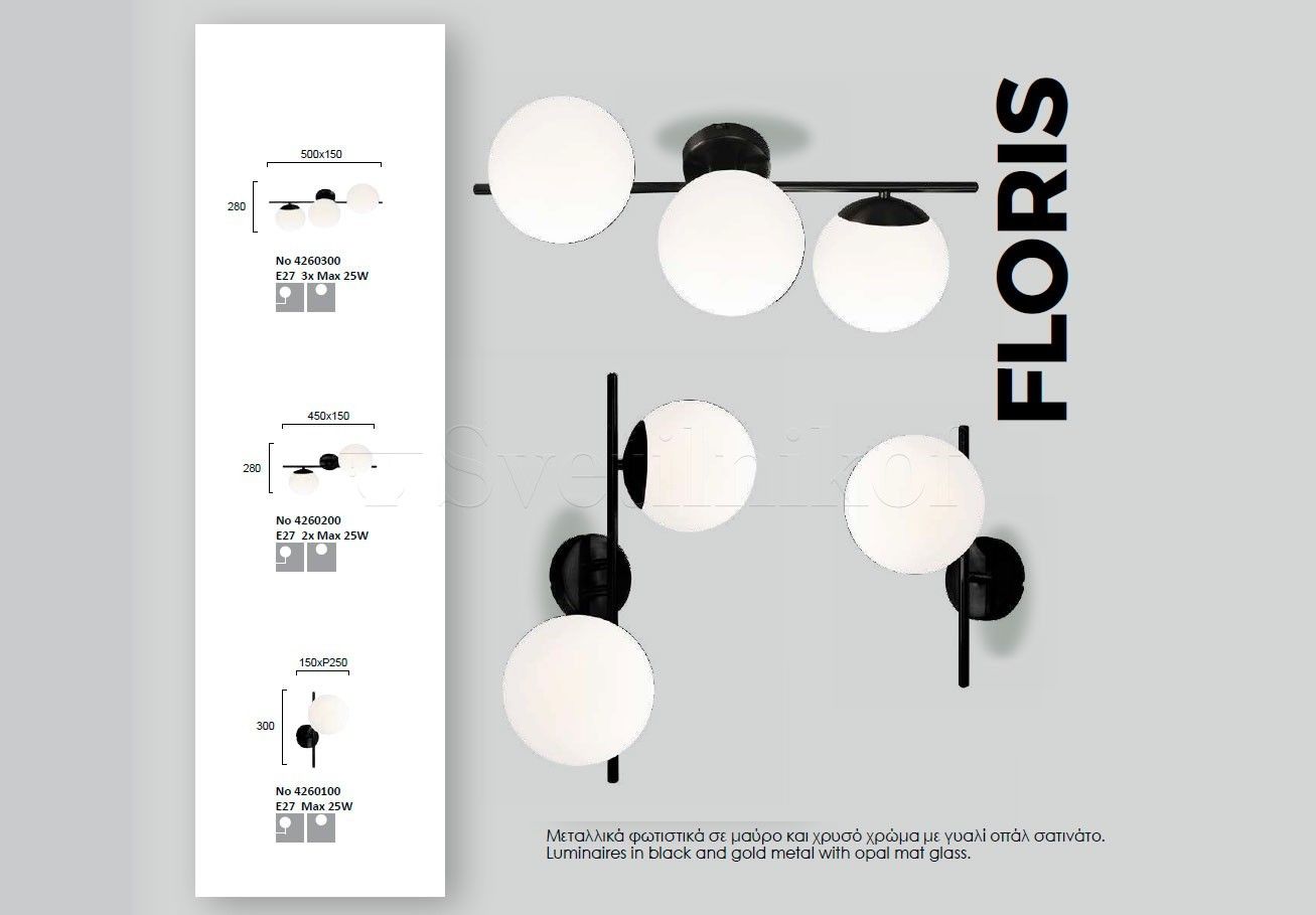 Στην οικογένεια Floris Viokef διατίθενται Απλίκα Μονόφωτη, Δίφωτη & Τρίφωτη.