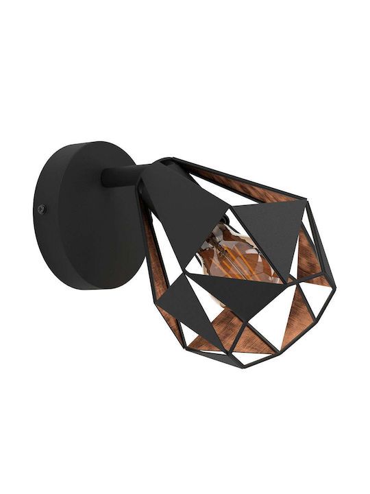 Απλίκα Μονόφωτη 1xE27 Μέταλλο Μαύρο-Χαλκός Αντικέ Eglo Carton 43715