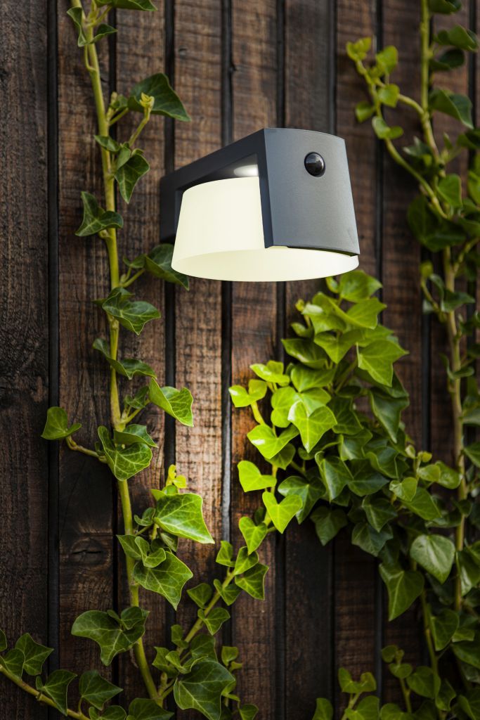 Απλίκα Φωτιστικό Ηλιακό με Αισθητήρα Κίνησης IP44 9,5w 1000lm 4000Κ 1x2200mAh 80° 160x217xY96mm Dark Grey Χυτό Αλουμίνιο Lutec Moon 6906001118