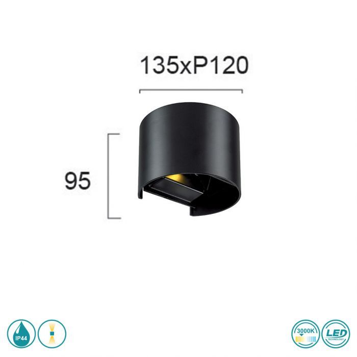 Απλίκα Round IP44 με ρυθμιζόμενη γωνία φωτισμού 6w Led 3000K Warm White 420 lm Μαύρο Αλουμίνιο Viokef Greg 4188701
