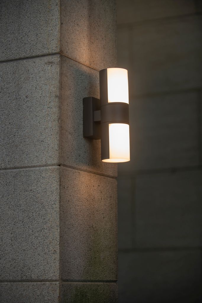 The two moveable heads offer you a 350-degree rotation possibility resulting in a nice glow on your external wall or a frontal diffuse light beam.
