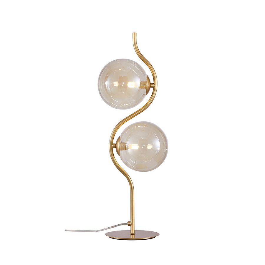 Επιτραπέζιο δίφωτο φωτιστικό, κατασκευασμένο από χειροποίητο γυαλί cognac και μεταλλικό σκελετό σε χρυσό χρώμα. Ύψος: 60εκ. Μήκος: 15εκ. Πλάτος: 20εκ. Λάμπες: 2 τεμ. Τύπος Λαμπτήρων: G9 Watt: 2*40w| Κατασκευαστής | SUNLIGHT |