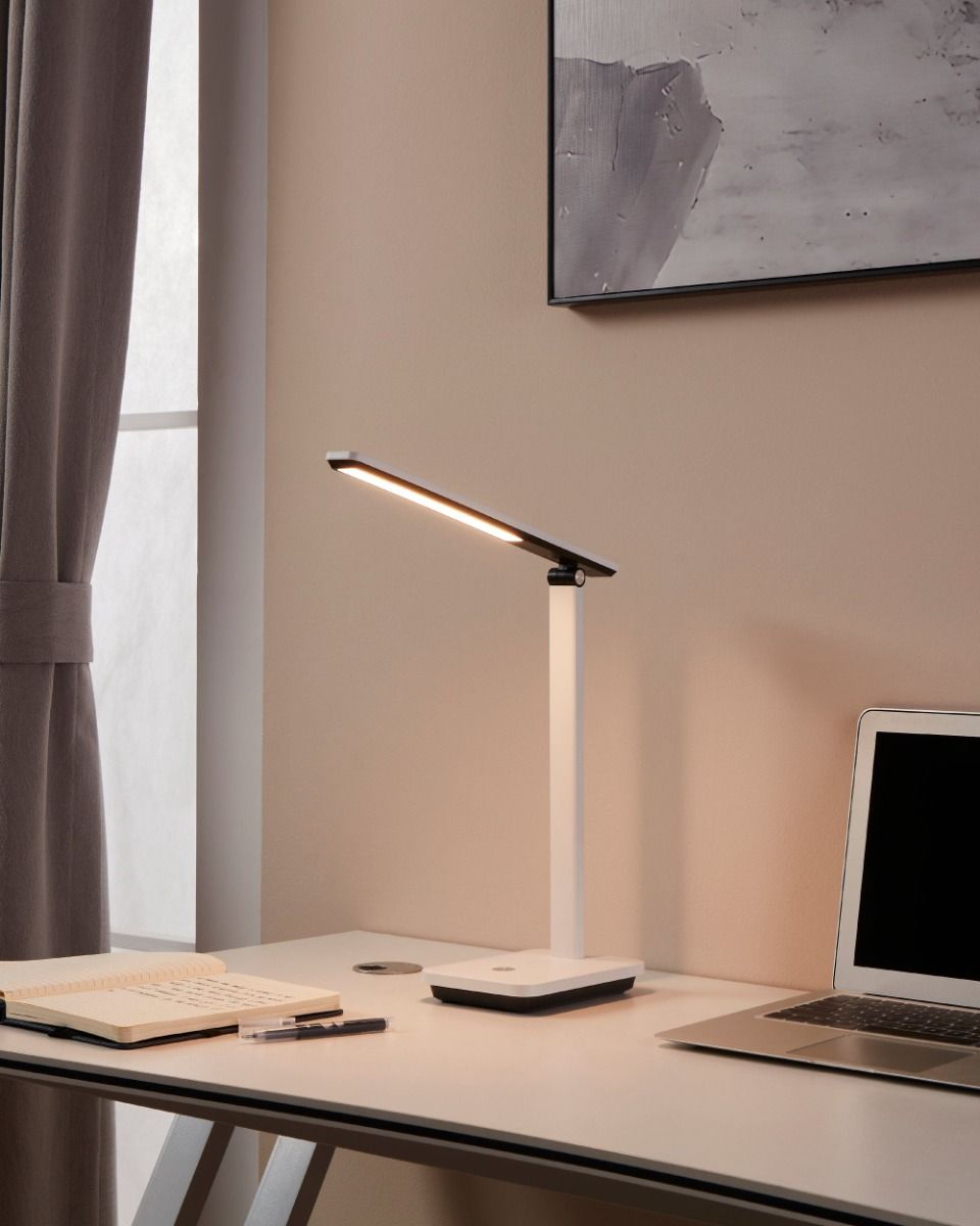 Επαναφορτιζόμενο φωτιστικό γραφείου της Eglo με ενσωματωμένο LED σε λευκό χρώμα.