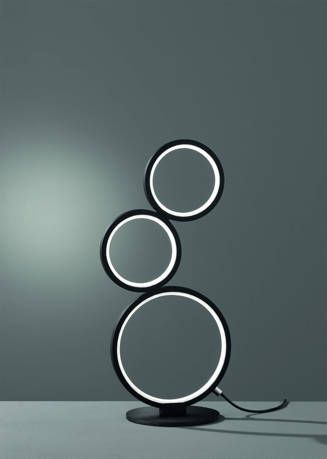 With its three stacked rings of different diameters, the RONDO table lamp is a real eye-catcher.
