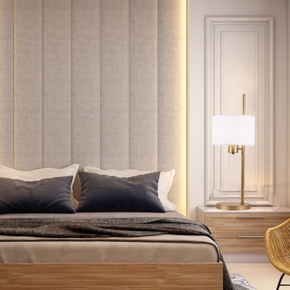 Επιτραπέζιο φωτιστικό από μέταλλο σε χρυσή απόχρωση και υφασμάτινο καπέλο 1XΕ27 D:38cm 3052-Golden
