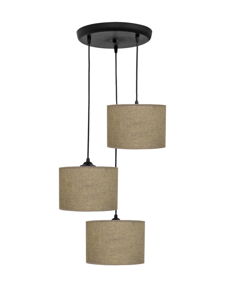 Φωτιστικό μοντέρνο οροφής 2φωτο ΗΚ-06 PENDEL 3L ΑΜΜΟΥ-ΒL / SAND-BL Τεχνικά χαρακτηριστικά σκελετός πλαστικός με καλώδια / καπέλο ύφασμα Χρώμα Μαύρο / άμμου H85 x Φ35cm 3 x E/27