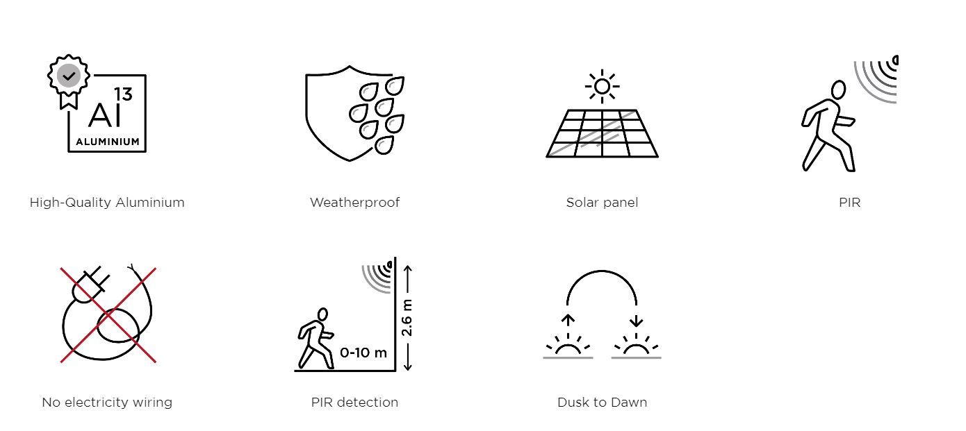 A sleek design, the MOZE outdoor solar wall lighting is not only functional but also a treat for the eye - during the day and in the evening.