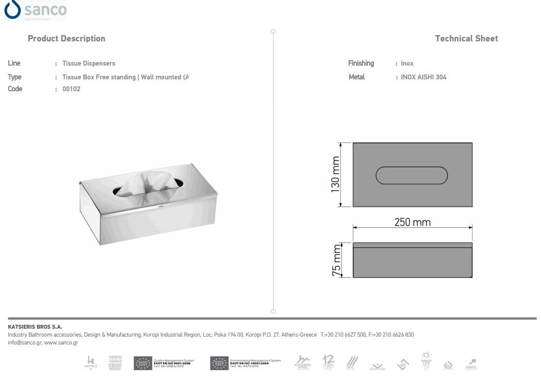 Θήκη για Χαρτομάνδηλα Επικαθήμενη-Επίτοιχη W25xD13xH13,5cm Sanco Tissue Dispensers Bronze Mat 0102-M25