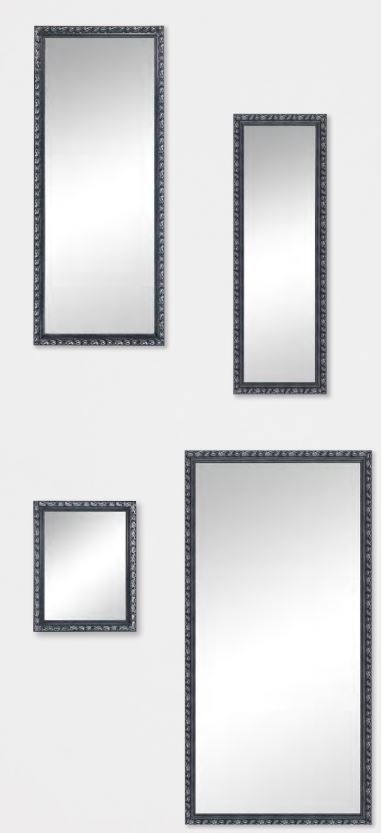 Στην οικογένεια Sonja της εταιρείας Mirrors & More ο καθρέπτης διατίθεται σε διαστάσεις 55x70cm, 50xc150c, 70x170cm, 100x200 cm σε Απόχρωση Κορνίζας Ασημί, Χρυσαφί & Μαύρο-Ασημί.