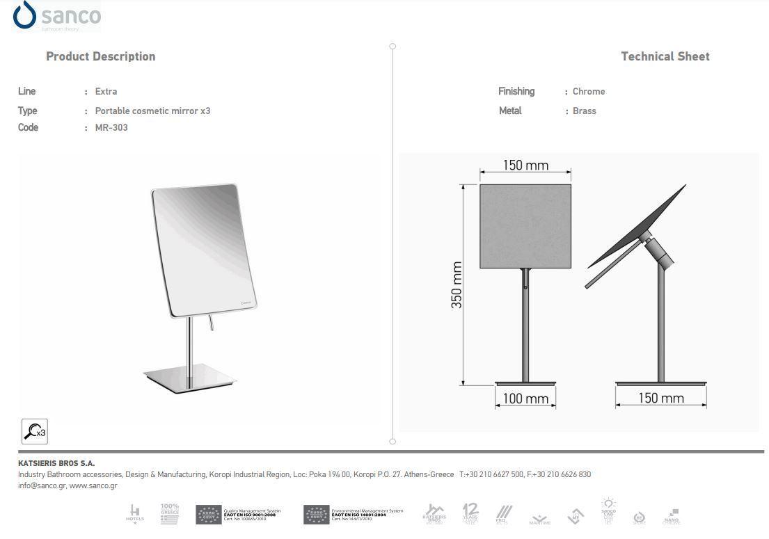 Καθρέπτης Μεγεθυντικός Επικαθήμενος W15xD15xH35 εκ. x3 Chrome Sanco Cosmetic Mirrors MR-303-A03Ειδική Τιμή 99,00 € Κανονική τιμή 110,00 € -