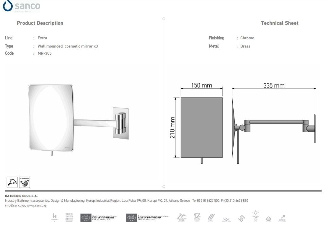 Καθρέπτης Μεγεθυντικός Επτοίχιος Μεγέθυνση x3 Chrome Sanco Cosmetic Mirrors MR-305-A03Ειδική Τιμή 108,00 € Κανονική τιμή 120,00 € -