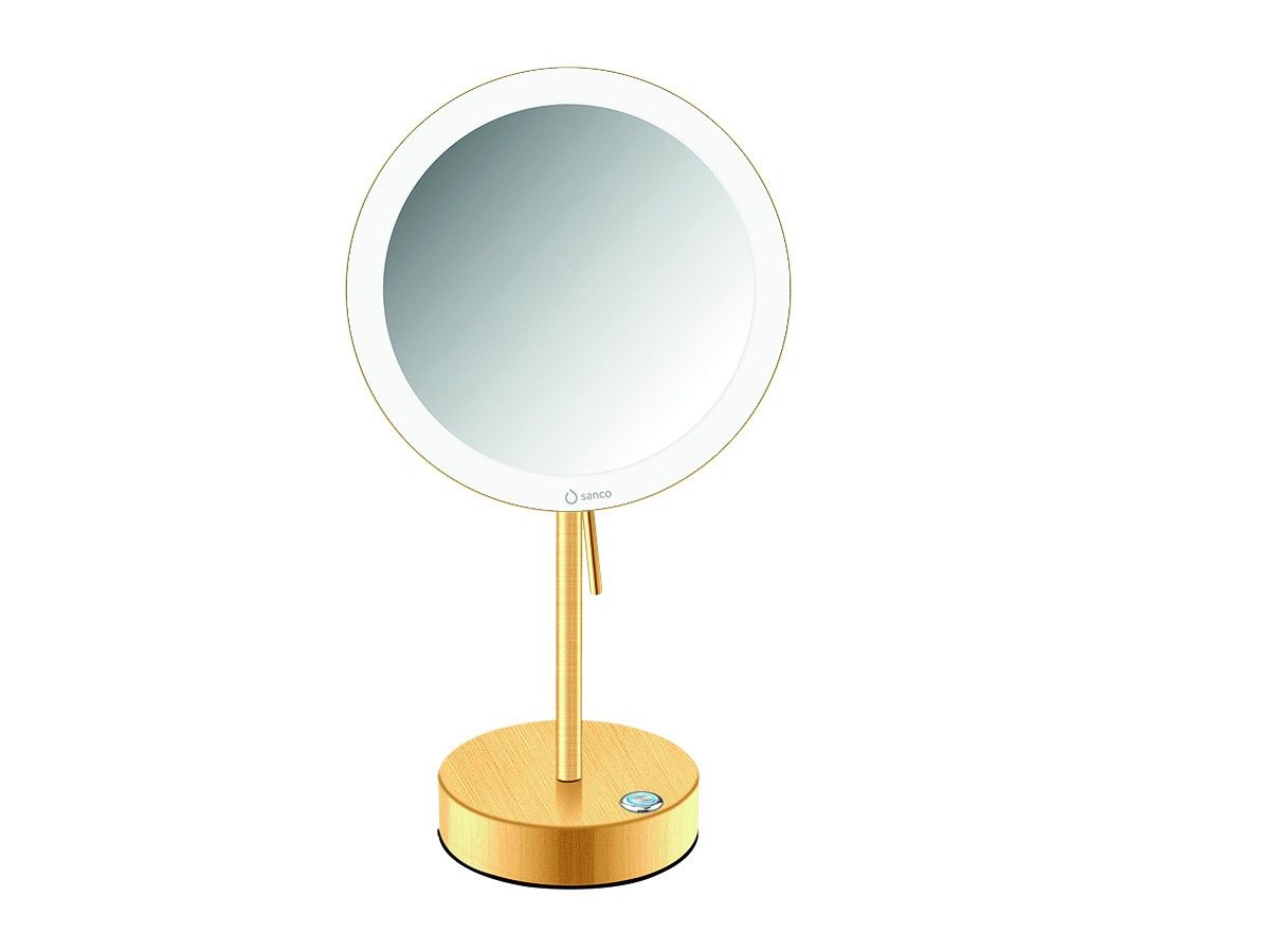 Καθρέπτης Μεγεθυντικός x3 Led Μπαταρίας 4xAA Επικαθήμενος Ø20xH36,5 cm Brushed Gold 24K Sanco Cosmetic Mirrors MRLED-903-AB5