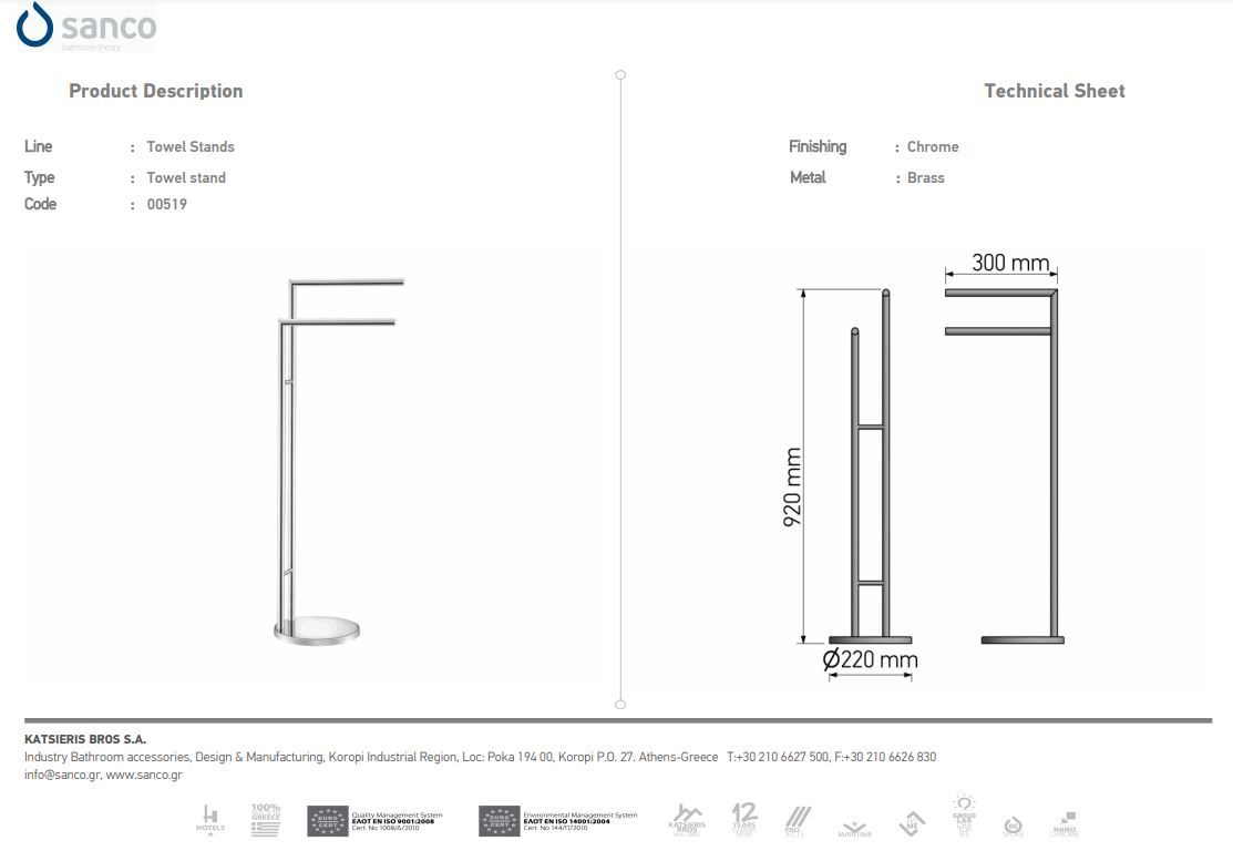 Καλόγερος Πετσετοκρεμάστρες Επιδαπέδιος Χρωμέ Sanco Standing 0519-A03