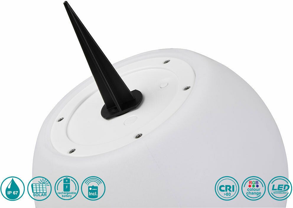 The MELO round solar light provides an atmospheric ambiance and inviting light accents around the house thanks to the integrated RGBW color changer.