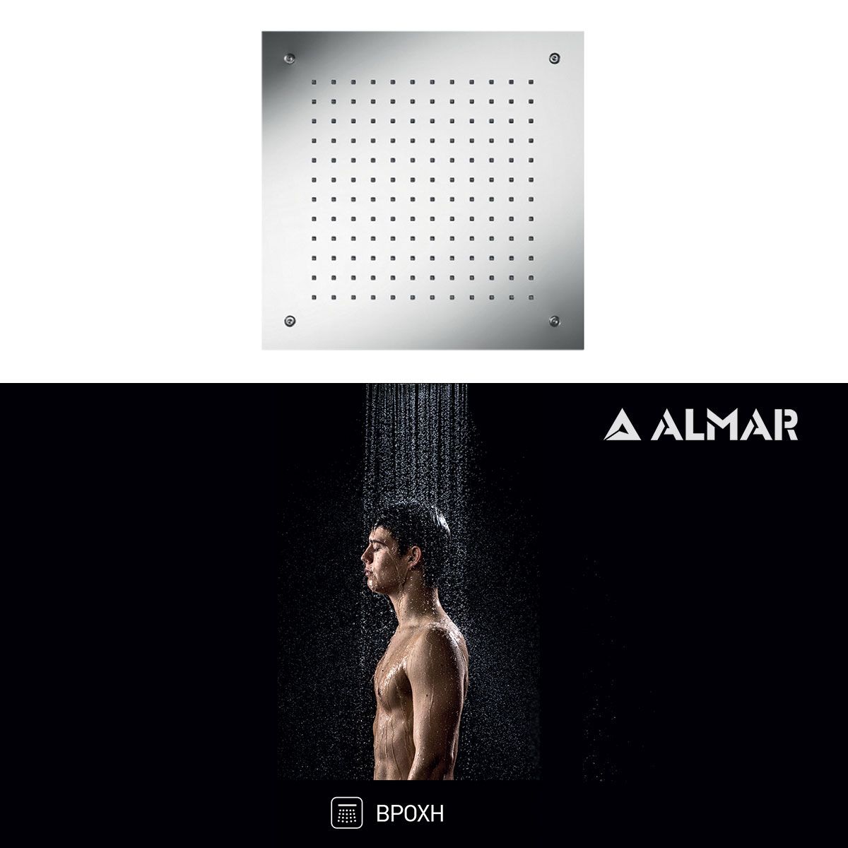Κεφαλή Ντουζ Εντοιχισμού Οροφής Temptation 38x38, Almar Inox Chrome E044228-100