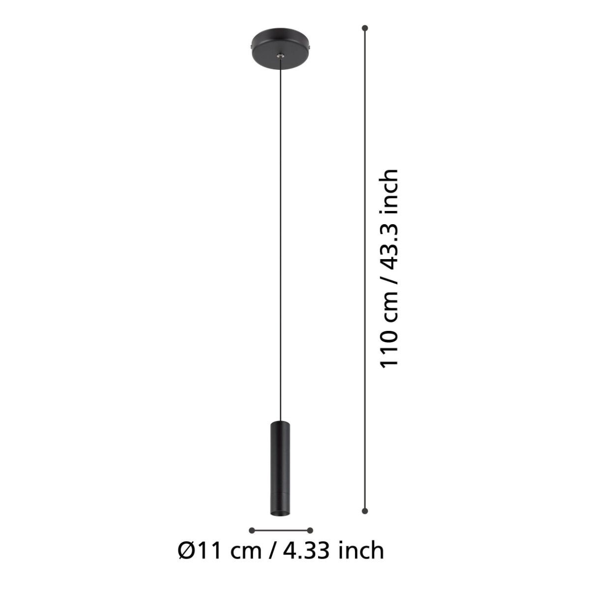 Κρεμαστό Φωτιστικό Ø40xH1100mm Led 5w 3000K 480lm Μαύρο Eglo Almudaina 900926