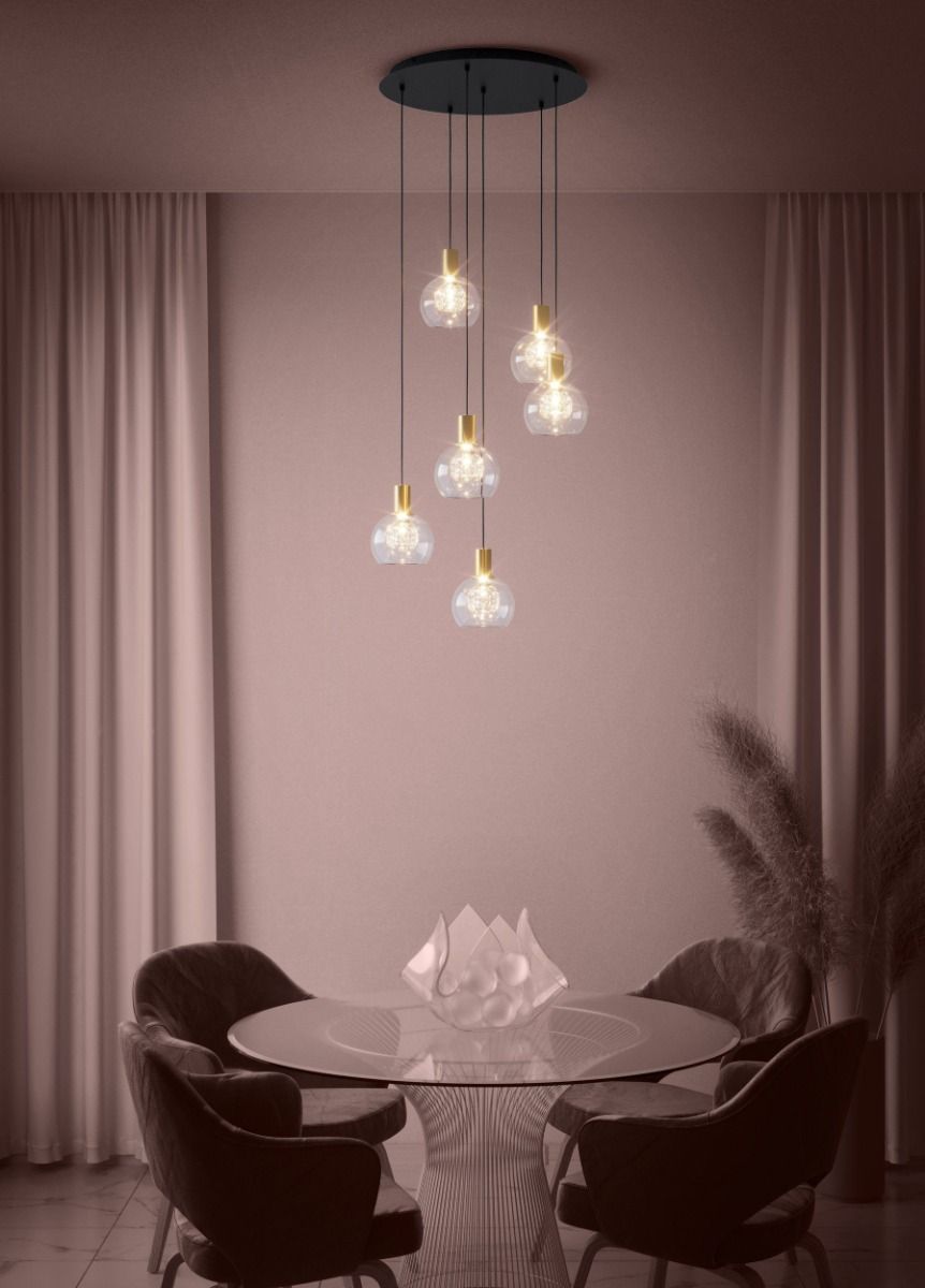 Κρεμαστό Φωτιστικό Εξάφωτο Ø50cm LED 3000K 3060lm Μαύρο-Ορείχαλκος-Γυαλί Eglo Terque 90279